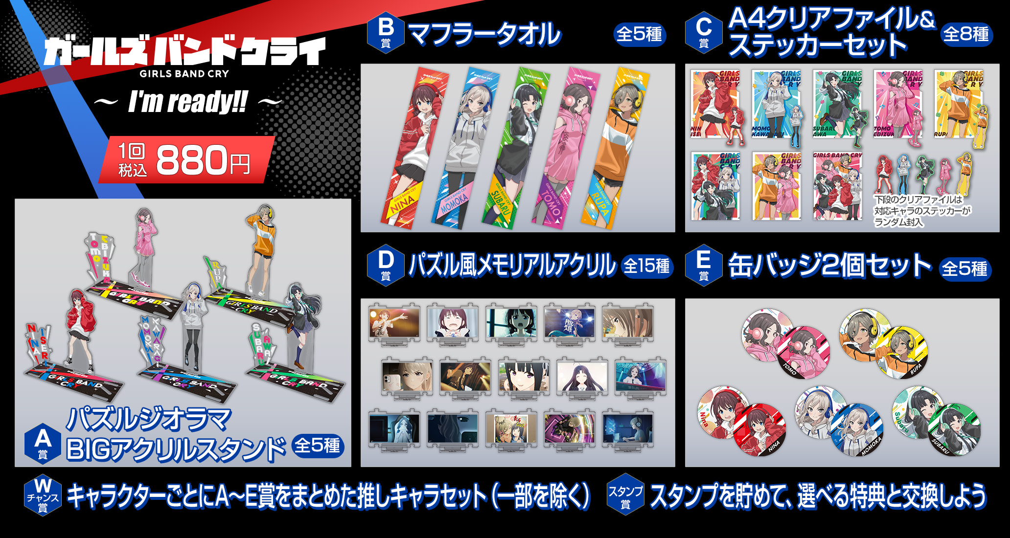 A~E賞の同一キャラグッズが全てセットで当たる! ※期間により当選賞品が異なります ※当選期間は下記キャンペーン期間をご参照ください ※C-6,-7,-8賞は含まれません